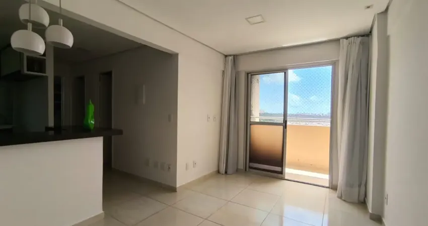 Apartamento em condomínio fechado, com 2 quartos (sendo 1 suíte), 1 vaga de garagem, cozinha planejada e varanda.