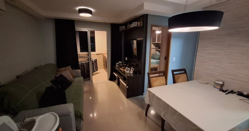 Apartamento com 2 dormitórios (sendo 1 suíte), sala aconchegante, cozinha planejada, área de serviço e banheiro social.