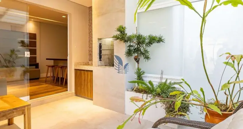 - Cozinha com passa prato e banquetas, equipada com: Geladeira, armários planejados, fogão, depurador de ar, filtro e máquina lava louças;