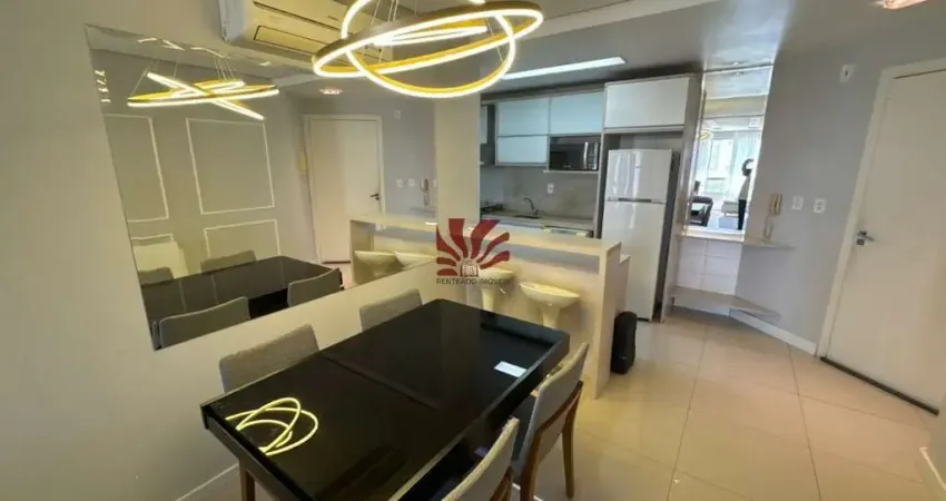 Penteado Imóveis aluga apartamento mobiliado com 87m² localizado no bairro Centro, o imóvel possui 03 dormitórios sendo 01 suíte, dois banheiros, área de serviço, sala de estar com sofá, mesa de jantar, painel de tv, cristaleira e ar condicionado, cozinha com fogão, armários sob medida e geladeira, possui junker e churrasqueira.