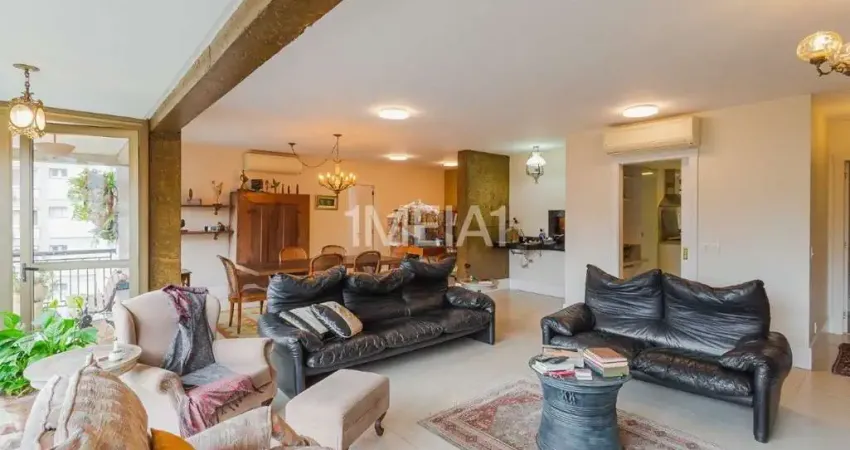 1MEIA1 vende/aluga apartamento mobiliado com 162m² de área privativa, living para 2 ambientes com sacada, lavabo, lareira, espaço gourmet com churrasqueira, 3 dormitórios, 3 suítes sendo 1 máster com closet e hidromassagem, cozinha equipada, área de serviço separada, dependência de empregada e 2 vagas de garagem.