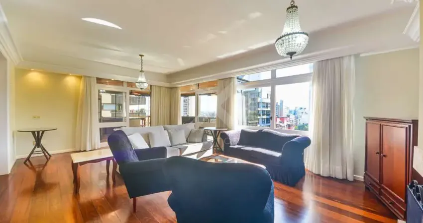 Apartamento para alugar no bairro Petrópolis, com 230 m² de área privativa, semi mobiliado, composto por 3 dormitórios, todos suítes, 4 banheiros no total, amplo living com ambientes bem definidos e excelente iluminação natural, cozinha funcional com móveis planejados, suítes espaçosas e 2 vagas de garagem cobertas.