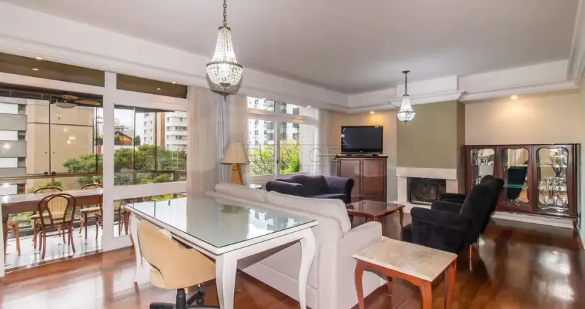 Bridge Imóveis vende este belíssimo apartamento com 226 m² privativos, distribuídos em três confortáveis suítes, incluindo uma suíte máster com closet e hidromassagem. O living é amplo, com três ambientes integrados, lareira, lavabo e sacadas frontais e laterais, sendo uma delas com churrasqueira. O imóvel conta ainda com cozinha montada com copa, área de serviço, dependência completa e ar-condicionado central em perfeito funcionamento. Semimobiliado, oferece conforto e praticidade.