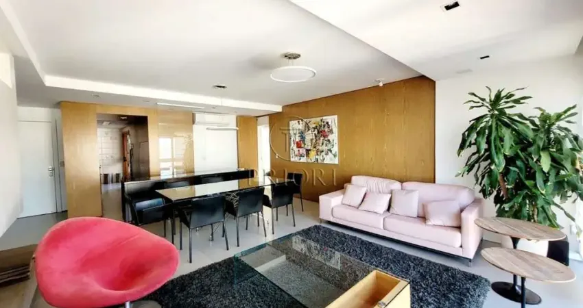 Magnífico e imponente apartamento com 121m² de área privativa, totalmente mobiliado, finamente decorado, churrasqueira privativa, lareira e três vagas de garagem