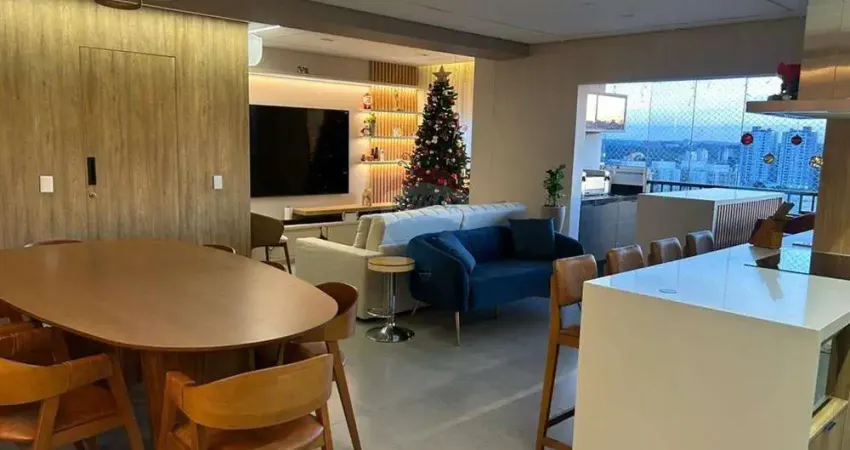A planta é extremamente funcional e moderna, composta por 3 dormitórios, sendo 2 suítes, além de lavabo. A área social é integrada, reunindo sala de estar, sala de jantar e cozinha americana, criando um ambiente amplo, elegante e acolhedor. A varanda gourmet é um dos grandes destaques, equipada com churrasqueira a gás e bancada em quartzo branco, perfeita para receber convidados e desfrutar momentos especiais com uma vista privilegiada.