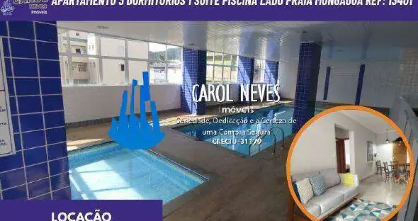 APARTAMENTO PARA LOCAÇÃO – 3 Dormitórios, sendo 1 Suíte – Piscina – Lado Praia – Mongaguá