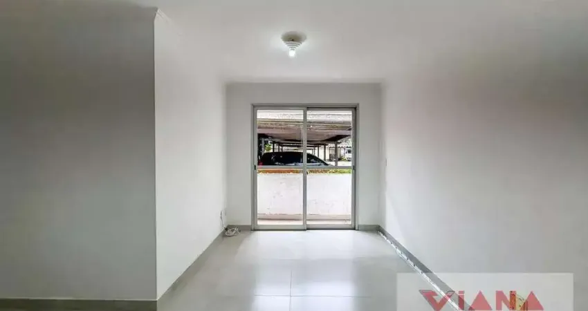 Apartamento com 72m², sala dois ambientes com sacada, cozinha, área de serviço, 3 dormitórios, 1 banheiro e 1 vaga.