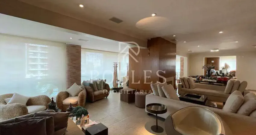 Apartamento reformado de 292m² com acabamentos diferenciados e marcenaria Kitchens. Possui 3 suítes (sendo a master com banheiro Sr. e Sra.), sala ampla para 3 ambientes com lareira e terraço gourmet. É totalmente climatizado, automatizado e conta com 5 vagas de garagem, sendo uma delas box.