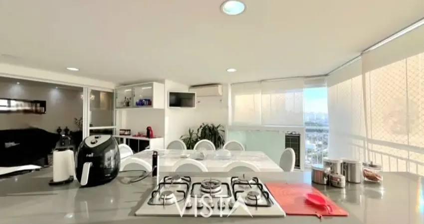 O apartamento conta com 3 dormitórios, sendo 3 suítes, além de 4 banheiros ao todo. A área social é integrada e funcional, proporcionando uma atmosfera agradável para convivência. A cozinha possui acabamento de qualidade e espaços otimizados.