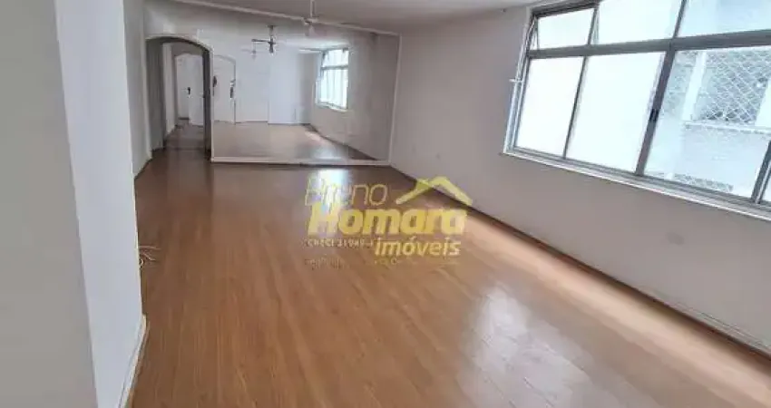 Apartamento para Locação, 142m² área útil, ambientes com iluminação natural, pé direito alto, sala para 3 ambientes, piso carpete de madeira, cozinha com armários, área de serviço e quarto de empregada, dormitórios amplos com armário embutido, banheiro social e Suíte com box de vidro.