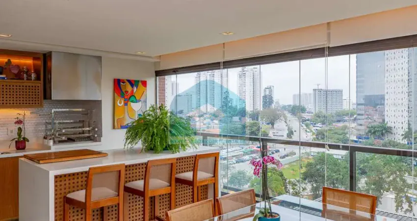 Viva com conforto, sofisticação e praticidade neste apartamento totalmente mobiliado e equipado. São 3 suítes, sendo a master com janela antirruído, closet, banheiro ampliado com chuveiro duplo e pias independentes. O living para dois ambientes integra-se à varanda gourmet com churrasqueira, forno, adega e fechamento em vidro. Conta ainda com sala íntima com adega, cozinha planejada e equipada, lavanderia com armários, quarto e banheiro de serviço, além de 4 vagas de garagem.