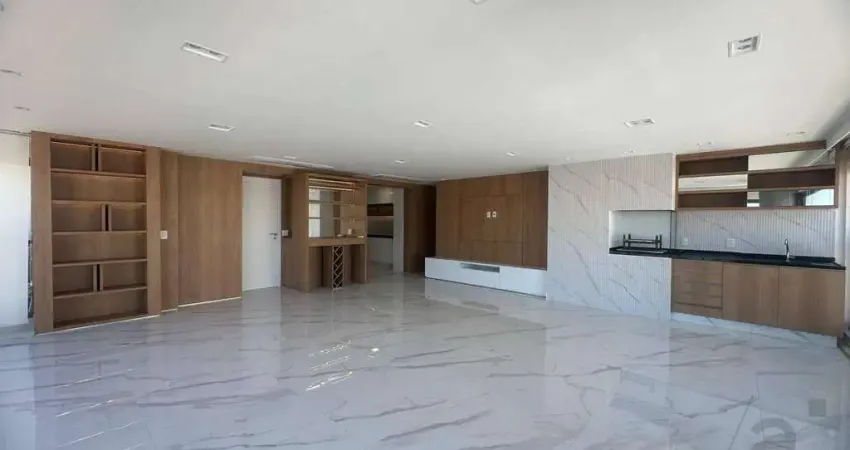 São 170m2, 3 suítes, marcenaria de alta qualidade, ambientes integrados, varanda com churrasqueira, ar condicionado, lavabo, andar ALTÍSSIMO, 3 vagas de garagem. Cozinha equipada.