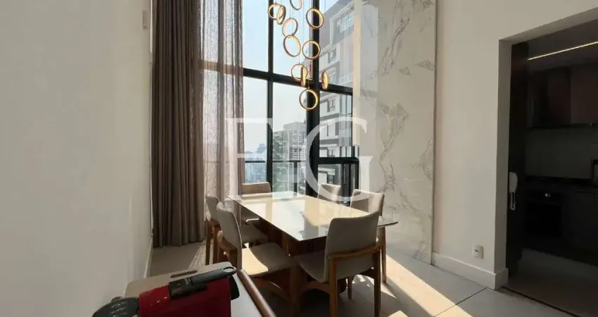Apartamento mobiliado com vista livre, pronto para morar na Vila Olímpia, com 95 m² privativos, possui 3 quartos sendo 3 suítes, lavabo, sala de estar, sala de jantar, churrasqueira e cozinha equipada, pé direito alto e 2 vagas de garagem.