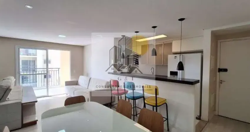 Apartamento de 98mts² com 3 dormitórios com armários sendo uma suíte, cozinha completa com geladeira, microondas, fogão embutido, armários planejados, mesa com 6 cadeiras, sala ampliada com painel e TV, 2 sofas sendo um retrátil, sacada envidraçada, lavabo, wc social com box, área de serviço com depósito e 2 vagas de garagem.