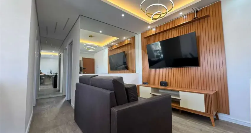 A sala ampla para dois ambientes integra-se à varanda, criando um espaço agradável e funcional. O apartamento conta ainda com 2 banheiros bem distribuídos.