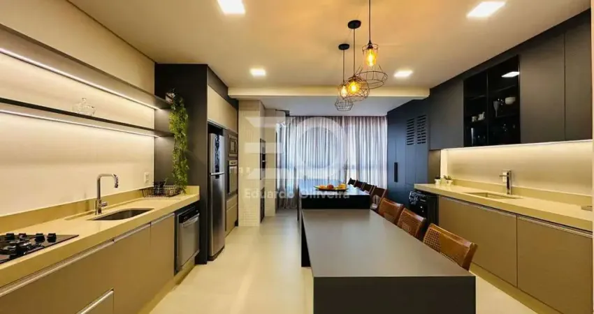 Com uma planta ampla e bem distribuída, o apartamento conta com quatro suítes que proporcionam privacidade e conforto, além de ambientes integrados que valorizam a convivência e a iluminação natural. A sala de estar e jantar se conecta à cozinha americana com espaço gourmet, criando um ambiente moderno e funcional, ideal para receber. A sacada integrada com churrasqueira privativa amplia ainda mais a sensação de espaço e bem-estar. Os acabamentos seguem um alto padrão, com pisos em porcelanato e laminado, aquecimento de água, ar-condicionado, lavabo, área de serviço e vagas de garagem que garantem total comodidade.