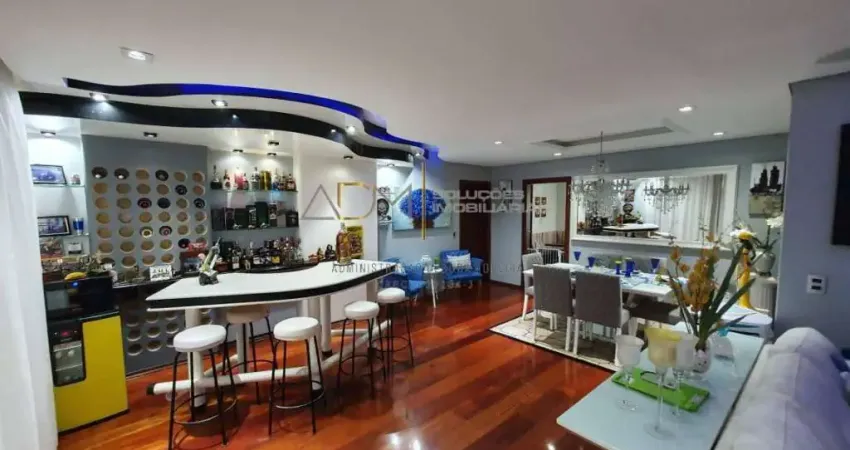 Sala de estar e jantar integradas com home bar
