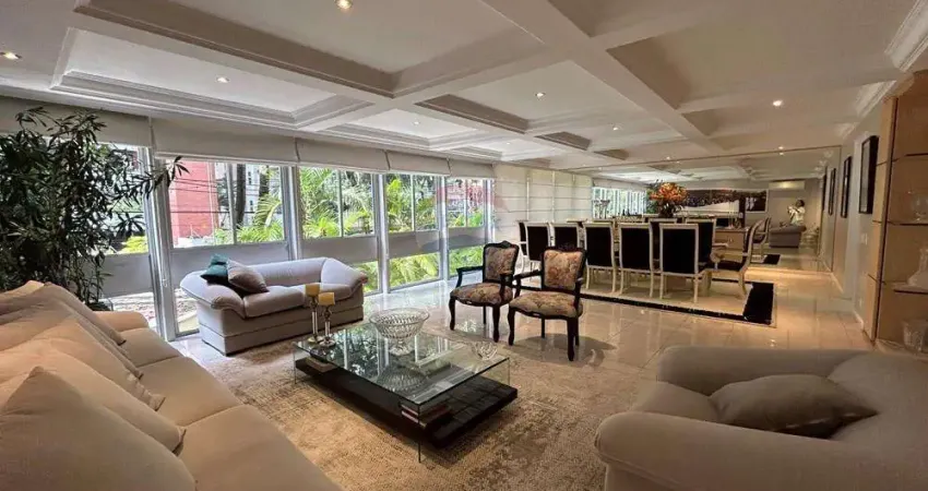 Com uma impressionante área de 337 metros quadrados, este apartamento é espaçoso e ideal para você e sua família. São 4 amplas suítes, com ar condicionado, perfazendo o espaço perfeito para o seu descanso e privacidade. Além disso, o quarto de serviço foi aberto para o corredor de circulação e transformado em um bonito escritório.