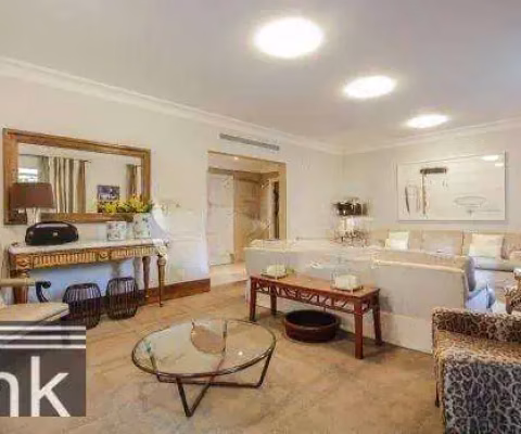116843 Suntuosa junção duplex no Condomínio Place des Vosges, com vista para o jardim do condomínio, 4 suítes, cozinha, adega, escritório/biblioteca, 3 salas, uma com pé direito duplo, 8 vagas de garagem. Totalmente reformado com armários e piso de madeira.