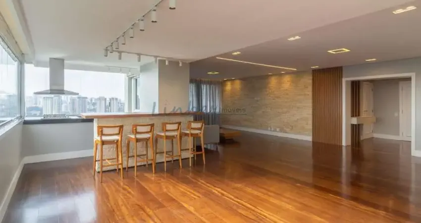 Apartamento um por andar com área total de 641m² e área privativa de 420m². Todo feito retrofit. Possui quatro suítes sendo uma Máster com banheira de imersão e closet para Homem e Mulher, lavabo, cozinha repleta de armários planejados e pia em quartzo, sala home office, sala despensa Sala bem ampla com varanda fechada com janela em vidro laminado de escamas com abertura em vão de 8 metros. Área gourmet na sala com balcão e bancada de 3 metros com churrasqueira elétrica, coifa e pia Todos os banheiros novos, hidráulica nova, elétrica, tomadas e iluminação novos! Dois elevadores sociais e um elevador de serviço, dois quartos pra empregados com banheiro, três vagas de garagem cobertas exclusivas e mais vagas comuns dentro do condomínio. Vagas de serviço e também vagas de convidados em vários pontos do condomínio, carregadores pra veículo elétrico nas vagas descobertas, sala Roupeiro, ampla lavanderia com bancada pra passar roupa, sala pra adega ou deposito, sala brinquedoteca, nos quartos piso laminado, nas salas piso em madeira. Apartamento com ótima acústica, entre os andares. Bosque Privativo! Condomínio completo e grande área verde, piscina aquecida, grande e infantil, sauna, playground, academia, quadras, salão de festas