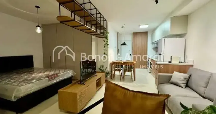 Studio Patriani mobiliado para locação no Guanabara, com 42 m². O imóvel é totalmente mobiliado e equipado, com tudo novo, oferecendo cozinha integrada, sala ampliada, varanda envidraçada e suíte climatizada. Conta ainda com fechadura digital, vista privilegiada para o Cambuí, 1 vaga de garagem ampla com ponto para carro elétrico, além de 1 vaga para moto e depósito privativo.