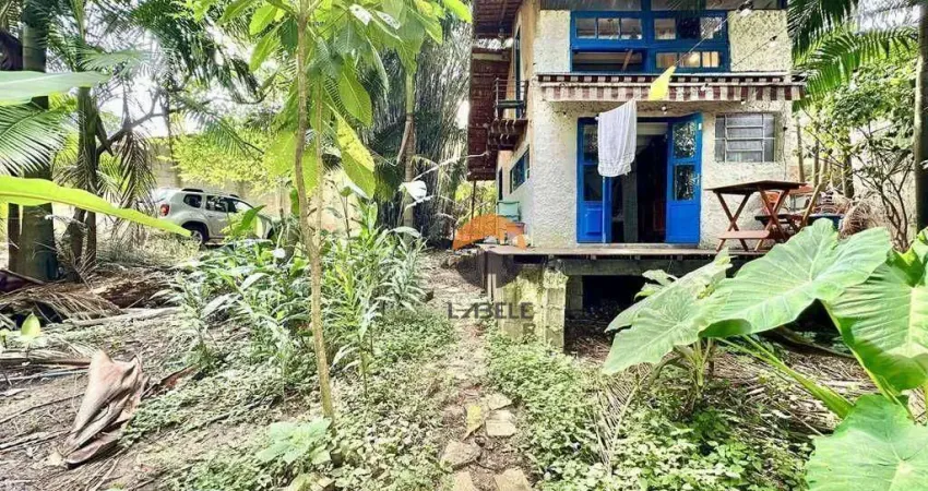 O terreno é composto por um grande jardim natural tropical, com palmeiras, bananeiras e um bambuzal na divisa com o córrego nos fundos.