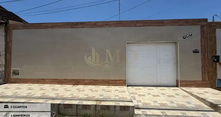 Excelente casa usada de 2 quartos e 2 banheiros, sala de estar / jantar, cozinha estilo americana toda revestida, lavanderia, quintal, varanda e garagem para até 3 carros.