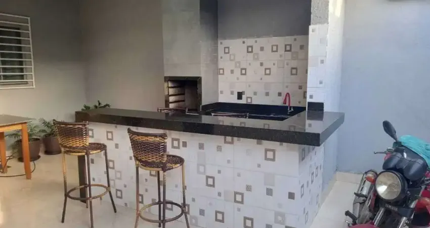 2 quartos (1 suíte) | 2 banheiros | Sala ampla | Cozinha equipada | Área externa com churrasqueira e balcão em mármore em L | Quintal todo concretado e pintado | Garagem coberta para 2 veículos