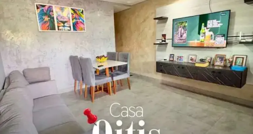 02 quartos, banheiro social, sala para dois ambientes, cozinha com armários e área de serviço separada.