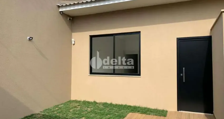 Excelente casa à venda em Uberlândia-MG, com aproximadamente 70 m² de área construída. Conta com sala conjugada com a cozinha em estilo americano, 2 quartos (sendo 1 suíte), banheiro social e 1 vaga de garagem.