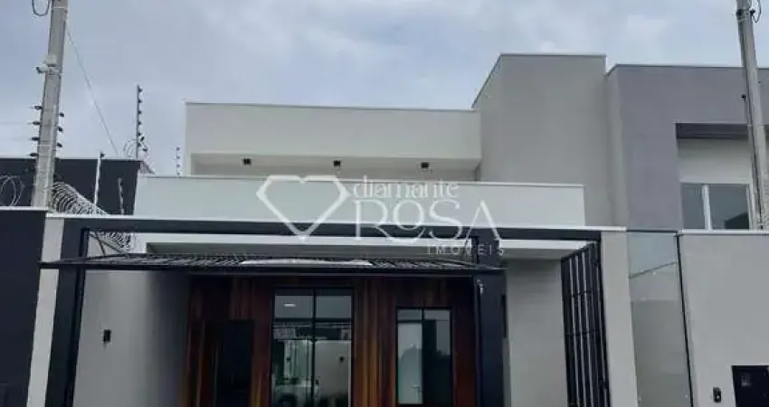 Residência moderna no Jardim Ecovalley, Sarandi. Com fachada sofisticada em ripado de madeira e detalhes em LED. Conta com 3 quartos (1 suíte) com piso laminado, demais ambientes em porcelanato, sala com pé direito duplo, LED e pendente, cozinha, banheiro social com box e pia esculpida, lavanderia, área gourmet com churrasqueira, pia e bancada, garagem para 2 carros, paver na área externa e portão eletrônico basculante com acesso para pedestres. São 95m² de construção em terreno de 150m².