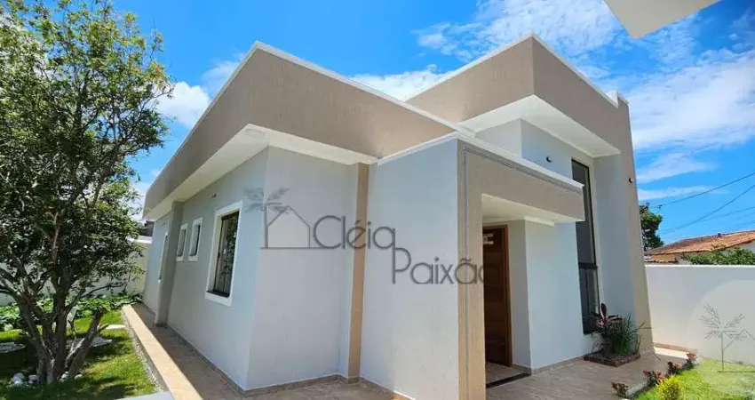 Casa moderna composta por dois quartos sendo 1 suíte, ampla sala com o pé direito duplo, cozinha americana, banheiro social, área de serviço, vagas na garagem e quintal gramado.
