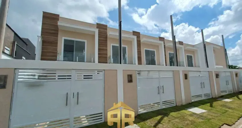 Casa duplex com duas suítes sendo um com varanda, sala ampla, lavabo, cozinha ampla, área de serviço e quintal com garagem.