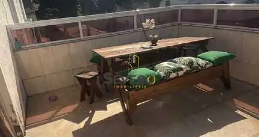 Casa com dois quartos, sala ampla, cozinha, um banheiro social, sacada, uma vaga coberta.