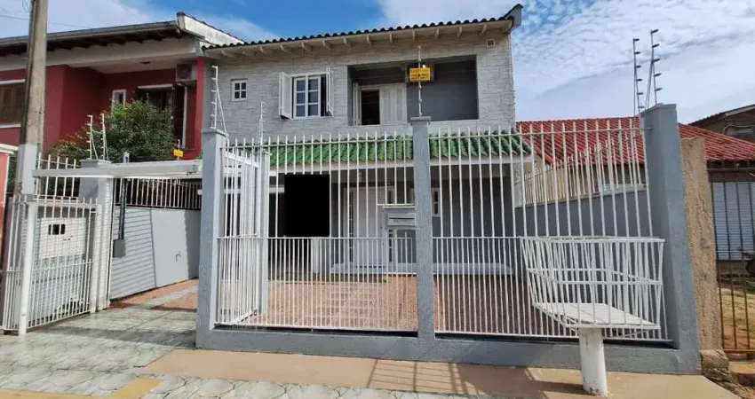 CONFIANÇA IMÓVEIS vende em Canoas, no Mato Grande, excelente sobrado com 02 dormitórios, sendo 01 suíte, banheiro social e sala de TV no andar superior. O andar inferior é composto por cozinha integrada com a sala de jantar e mais um banheiro. Possui vaga de garagem coberta para 03 veículos e churrasqueira. Nos fundos tem ainda um anexo de 22,50m², averbado, onde possui lavanderia e mais um banheiro.
