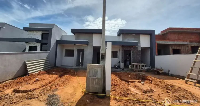 CASA NOVA NO LOTEAMENO QUE MAIS CRESCE NA REGIÃO tendo 57m² de área construida Sala de estar Sala de jantar Cozinha 2 dormitórios Lavanderia Facahada moderna e imponente Aberturas em alumínio e PVC