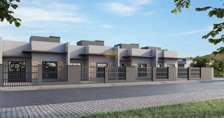 Casa com 48m, 02 quartos, banheiro, cozinha, sala de estar/ jantar e área de serviço. Possui churrasqueira e vaga de garagem.