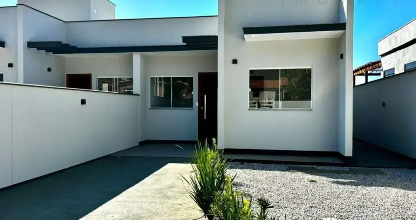 Casa nova, recém-construída, localizada no bairro Fundos, em Biguaçu, em uma região residencial e de fácil acesso.