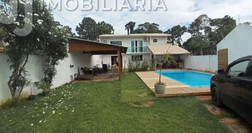 Linda casa com piscina, com 02 dormitórios sendo 01 suíte, 01 banheiro social, cozinha e sala de jantar integradas, sala de estar com lareira, lavanderia, sacada com acesso aos dormitórios, varanda gourmet com churrasqueira e fogão campeiro, espaço coberto para jogos, amplo pátio com piscina, chuveiro externo na área da piscina e jardim com árvores frutíferas, vagas de estacionamento para 06 carros.