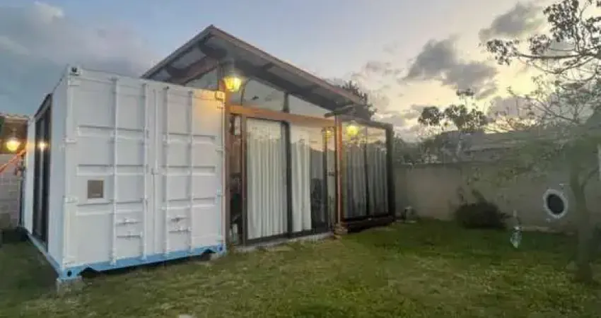 JJ Imobiliária VENDE, casa container, em São João do Rio Vermelho, Florianópolis-SC. São 80m² de área construída e 480m² de área total, sendo 16m de frente por 30m de fundos.