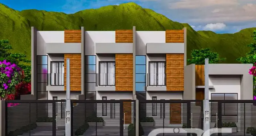 Sobrado à venda no Boa Vista, Joinville. Esta residência geminada oferece o equilíbrio perfeito entre conforto e praticidade, e está situada em uma localização privilegiada, próxima a vias de acesso e a importantes estabelecimentos comerciais. Com aprox. 88m² de área construída, o imóvel conta com uma sala de estar espaçosa integrada à sala de jantar, cozinha funcional e duas suítes, todas as áreas internas com acabamento de porcelanato, gesso e massa corrida. Há, ainda, um lavabo e uma área de serviço prática.