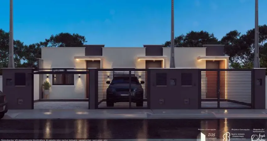 Casa geminada moderna com 2 dormitórios a 250m do mar – Navegantes/SC Encante-se com esta casa geminada de 61m² de área privativa, projetada para oferecer conforto, praticidade e estilo. O imóvel é composto por: 2 dormitórios, sendo 1 suíte; Banheiro social; Living integrado; Cozinha; Lavanderia externa; Vaga de garagem. Com fachada moderna e iluminação em LED, a casa se destaca pelo visual contemporâneo e pelos acabamentos de alto padrão. Conta ainda com piso em porcelanato, forro em gesso, portas brancas, infraestrutura para ar-condicionado e portão basculante. Localizada a apenas 250 metros do mar, é ideal para quem busca morar ou investir no litoral de Navegantes, com excelente valorização e qualidade de vida.