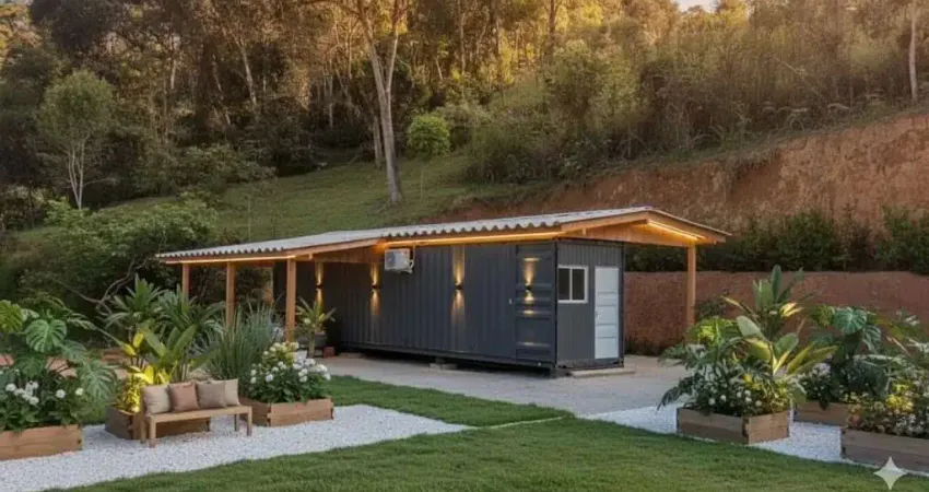 Possui um casa container com 88,22m², mista de madeira e alvenaria, com 02 dormitórios, sendo 01 suíte, sala e cozinha, lavanderia, 01 vaga de garagem coberta, 01 banheiro social, climatizada com ar condicionado na sala e no quarto, projeto em fase de finalização, 200m² que pode ser utilizado como jardim ou estacionamento.