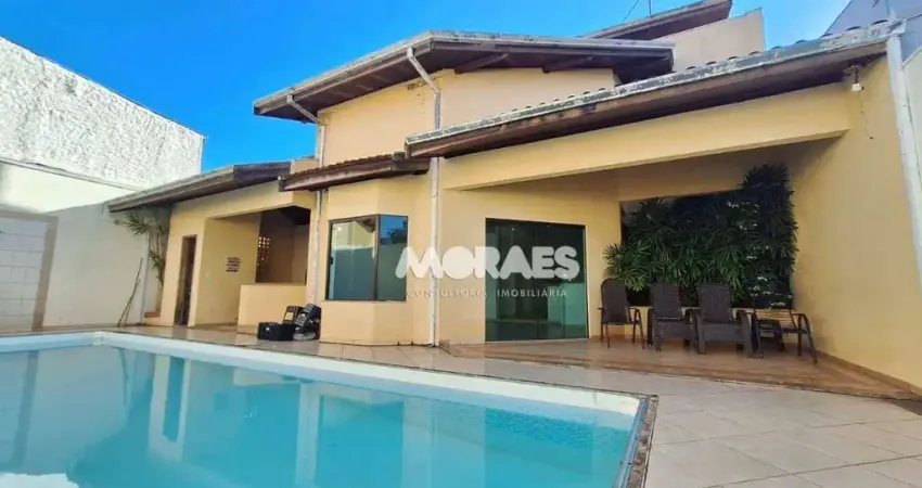 A casa conta com pé-direito duplo, duas salas amplas e ótima integração entre os ambientes. A área externa é um dos destaques, com quintal generoso e jardim, além de piscina de aproximadamente 55.000 litros.