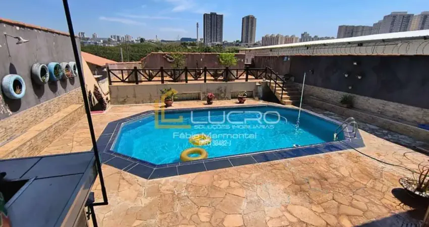 Área de lazer com piscina, churrasqueira e edícula nos fundos, composta por 1 quarto e 1 banheiro, garantindo ainda mais espaço e privacidade.