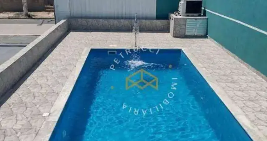 Com 2 quartos, sala, 5 banheiros, cozinha, salão de festas, piscina, área de serviços, garagem grande para 5 ou mais vagas.