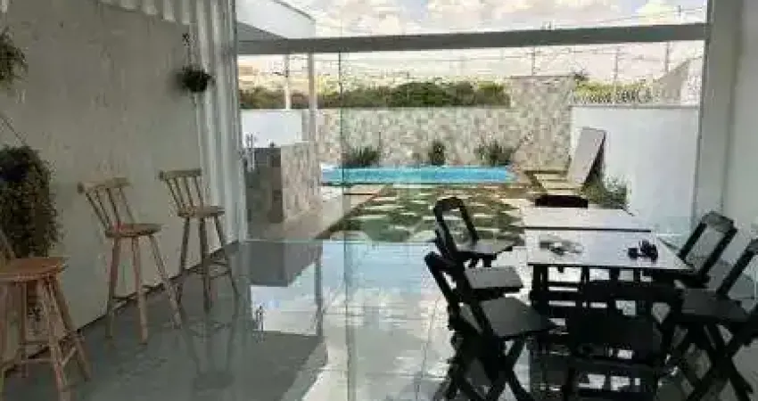 Sobrado com 02 suítes, sala ampla, cozinha, banheiro social, área gourmet com banheiro, área de serviço, churrasqueira e piscina