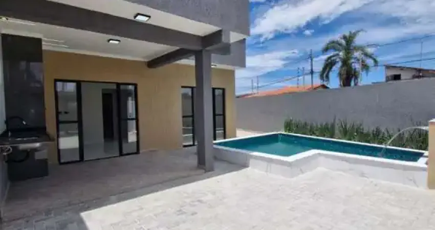 Casa nova, de esquina à venda no bairro Jardim das Palmeiras, em Itanhaém, uma quadra do marImóvel moderno com 71,12 m² de área construída em terreno de 150 m², oferecendo 2 dormitórios sendo 1 suíte, 3 banheiros, sala confortável e 2 vagas de garagem. Conta com área gourmet completa, churrasqueira com pia de apoio e piscina com banco molhado, hidro e iluminação em (link removido) murada, com laje, moldura de gesso, portão em alumínio e documentação em ordem com escritura e averbação. Aceita financiamento bancário, FGTS e repasse com proprietá(link removido) 530 mil por 489 mil