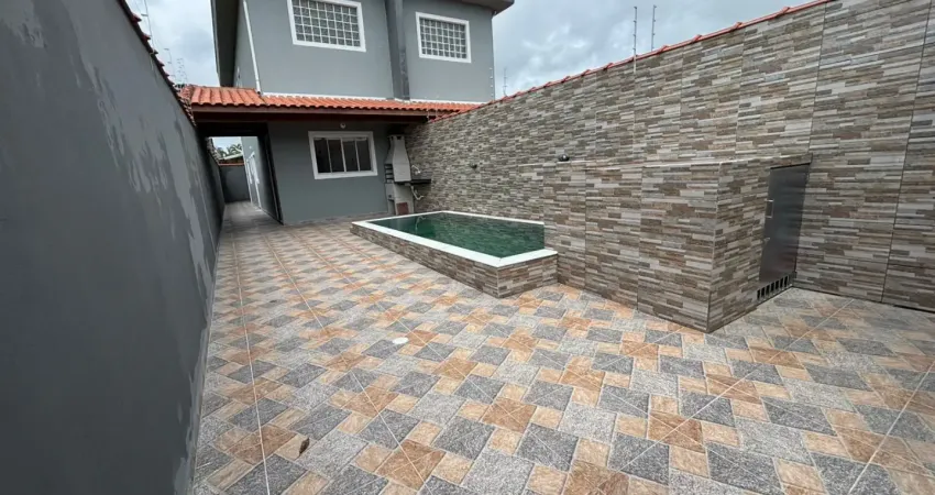 Casa localizada lado praia a 1500 metros do mar em rua calçada com 2 quartos (sendo 1 suíte), possui area gourmet com churrasqueira e piscina