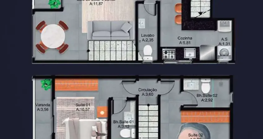 Sobrado triplex com gesso rebaixado, projeto inovador de iluminação e churrasqueira.